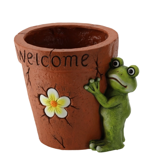 La surface texturée, légèrement craquelée façon terre cuite, et la figurine détaillée de grenouille confèrent au pot un caractère unique. Sa conception résistante assure stabilité et tenue face à la pluie et au soleil, ce qui le rend idéal pour les jardins, terrasses et balcons.