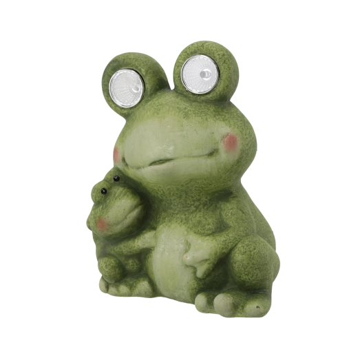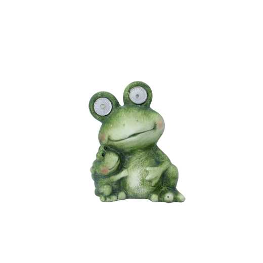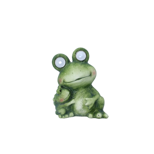 Cette charmante figurine de grenouille aux yeux lumineux apporte une touche de fantaisie et de lumière à votre espace. La grande grenouille intègre des LED dans les yeux qui servent de douce veilleuse d’orientation, tandis que la petite grenouille non lumineuse renforce l’ambiance familiale de l’ensemble. Grâce à ses dimensions compactes, elle trouvera parfaitement sa place sur un rebord de fenêtre, des marches, près de l’entrée de la maison ou parmi les plantes sur la terrasse.