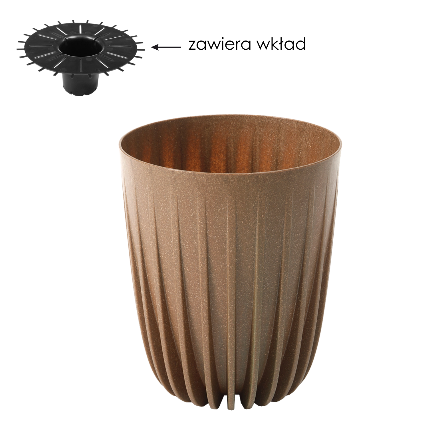 Le cache-pot stylé MIRA ECO Wood d’un diamètre de 19 cm au décor de bois naturel séduit par son motif géométrique moderne et ses rainures verticales. Grâce à sa plus grande profondeur, il est idéal pour les plantes au système racinaire développé et favorise leur croissance saine. Le polypropylène résistant facilite l’entretien, tandis que l’insert avec trous de drainage assure une irrigation optimale. Parfait pour l’intérieur comme l’extérieur, il s’harmonise avec divers styles – du classique au bohème.