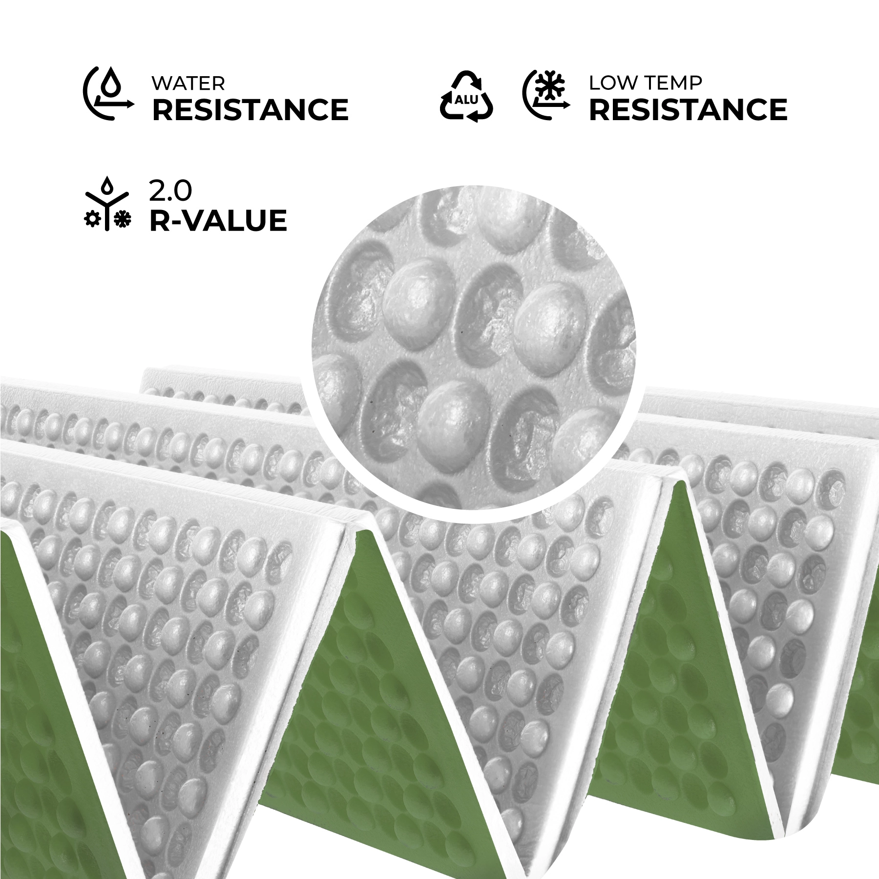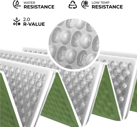 - Utilisation trois saisons grâce à la couche d’aluminium réfléchissante (R-Value 2,0)