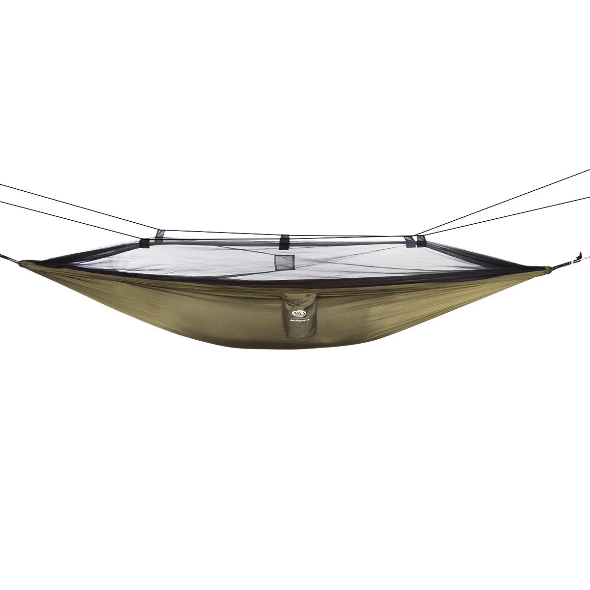 Le nylon 210T (70 g/m²) durable est léger, respirant, résistant à l’humidité et sèche rapidement. Une fois plié, il tient dans sa housse intégrée de 24 × 13 cm et ne pèse que 0,69 kg, idéal pour le sac à dos. Charge maximale 180 kg et passages d’extrémité solides avec mousquetons pour une suspension fiable.