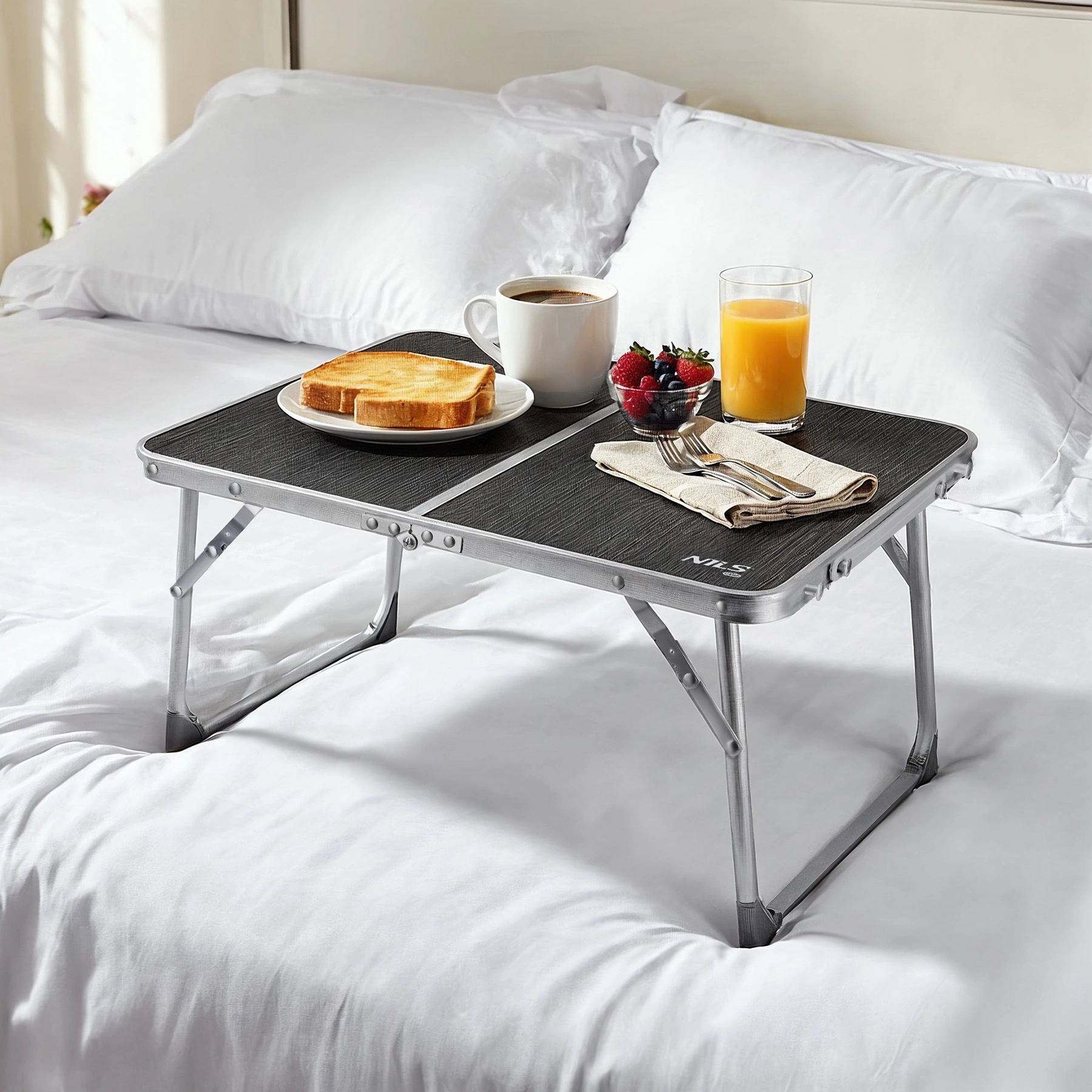 Parfaite comme table de camping, plateau de pique-nique ou table de petit-déjeuner au lit.