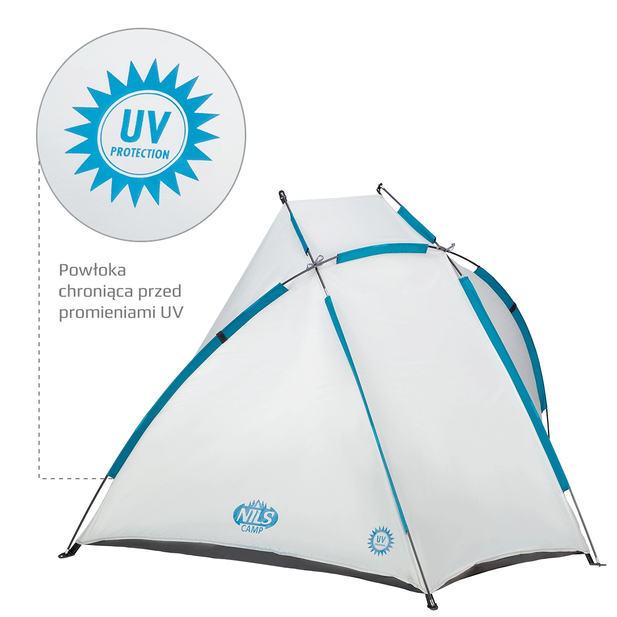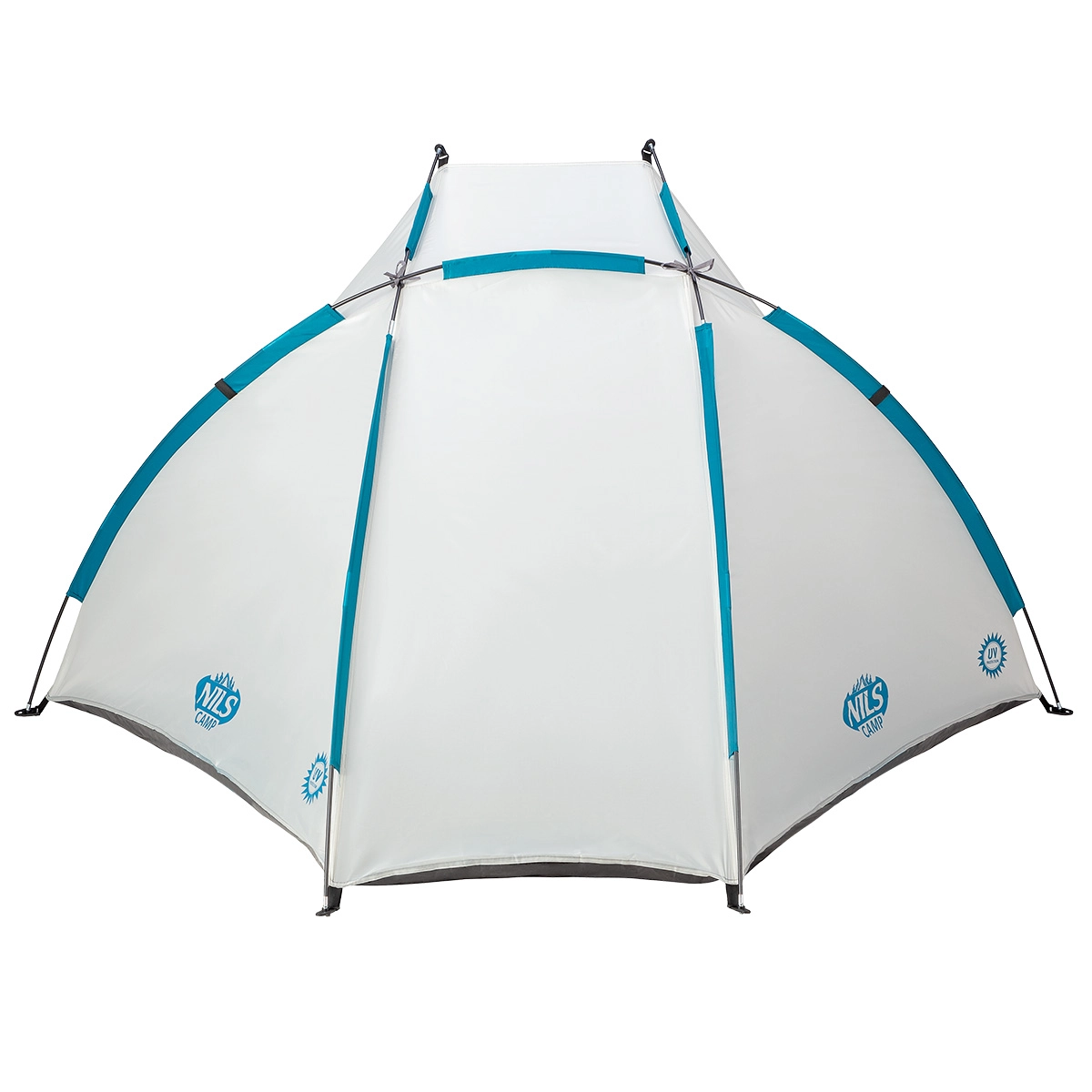 L’abri de plage NILS Camp, léger et pratique, vous protège du soleil et du vent. Idéal pour la mer, la piscine ou le jardin. Il offre une protection UV avec une réflectivité jusqu’à 96 %, un montage rapide grâce aux arceaux en fibre de verre et des dimensions compactes une fois plié pour un transport facile.