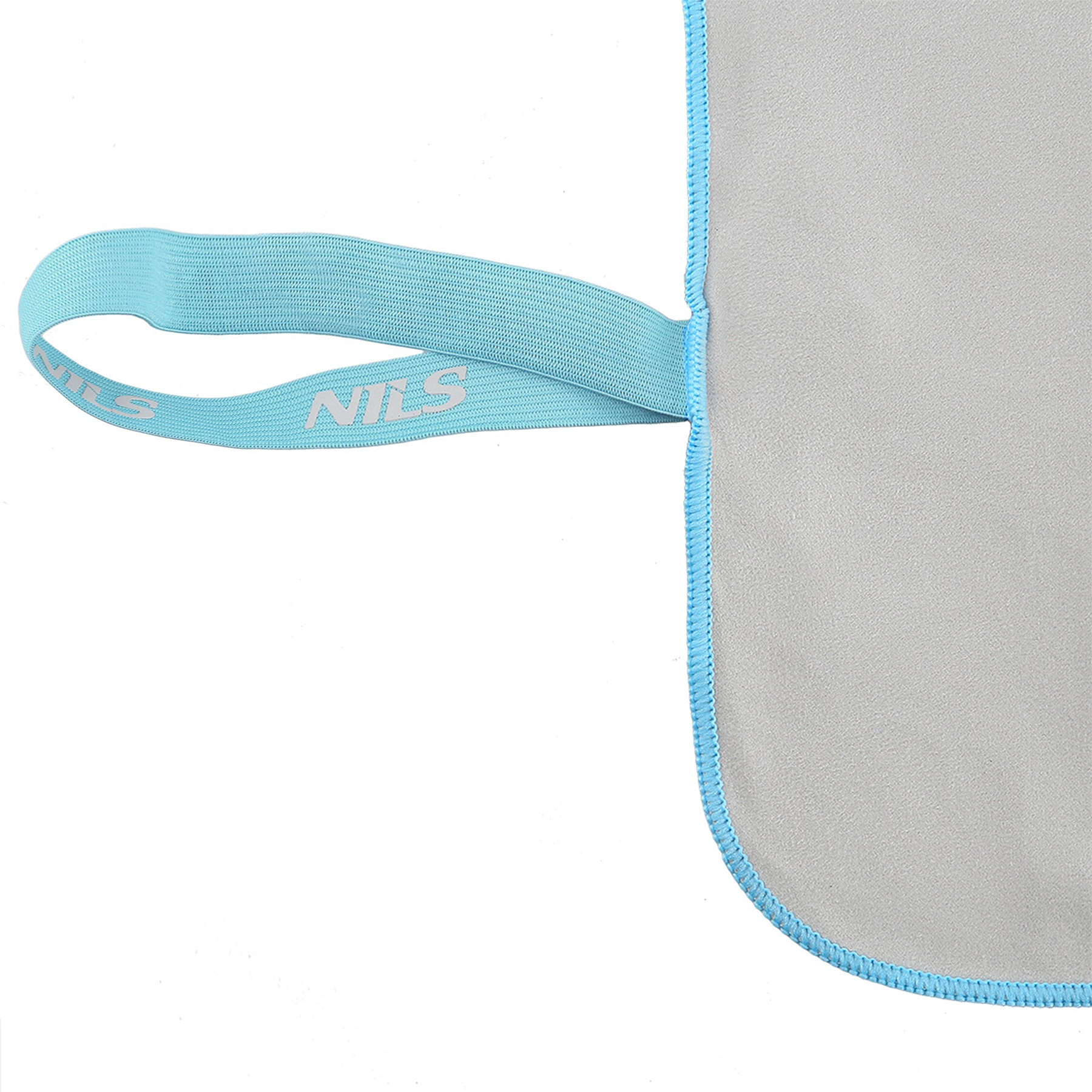 Une fois roulée, la serviette se fixe avec la sangle au logo NILS. Elle économise de la place dans le sac à dos et reste soigneusement rangée.