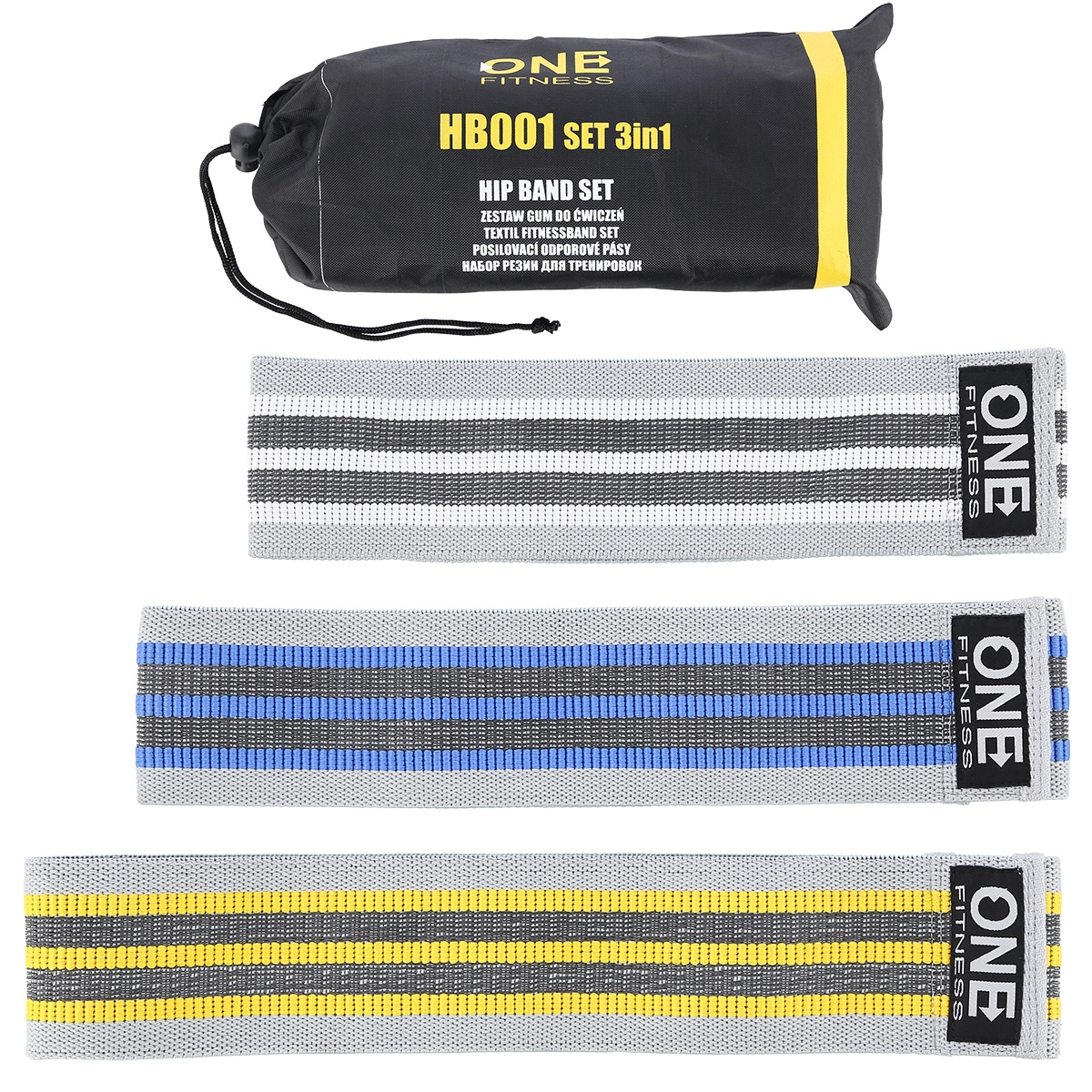 Ensemble d’élastiques de résistance pour hanches ONE Fitness 3-en-1