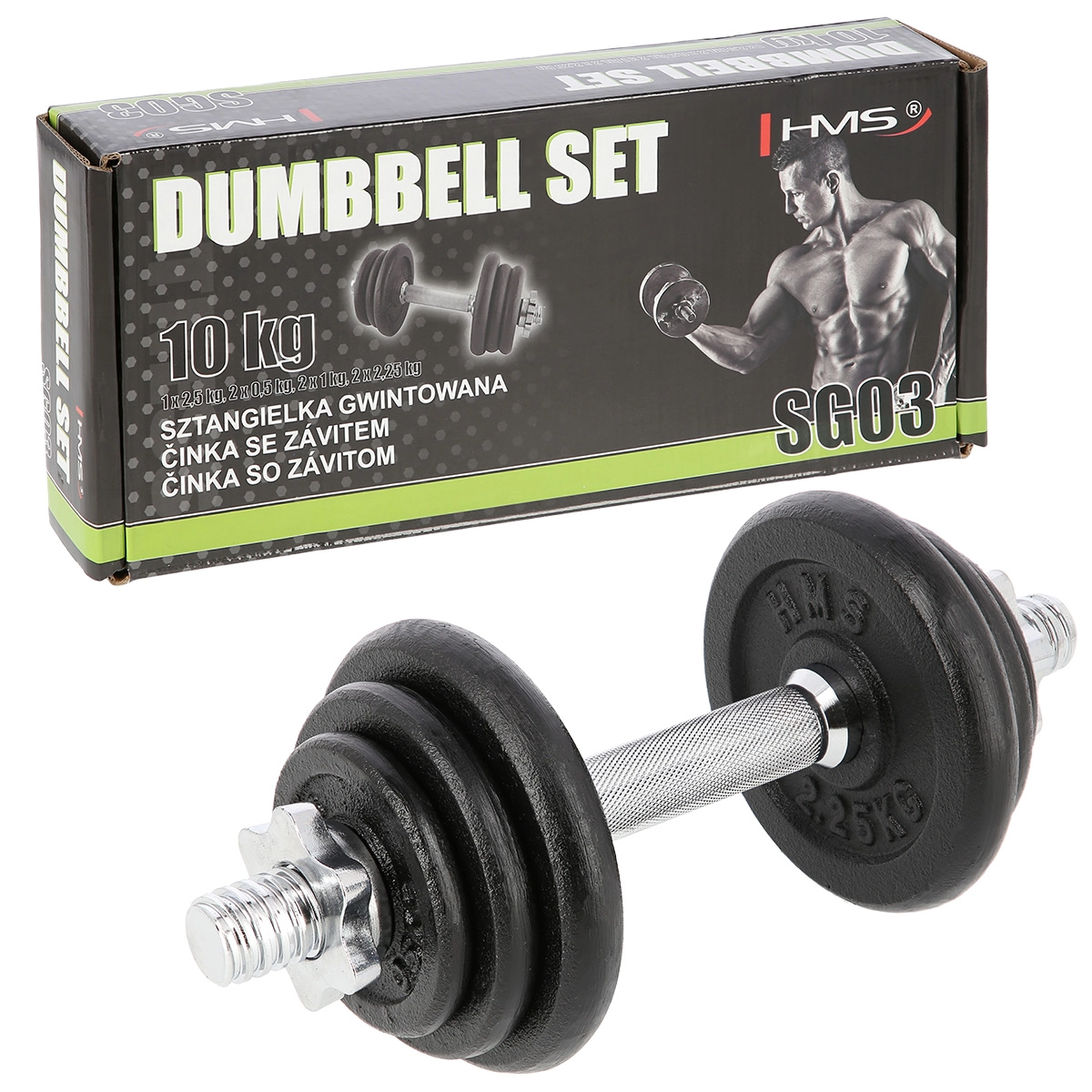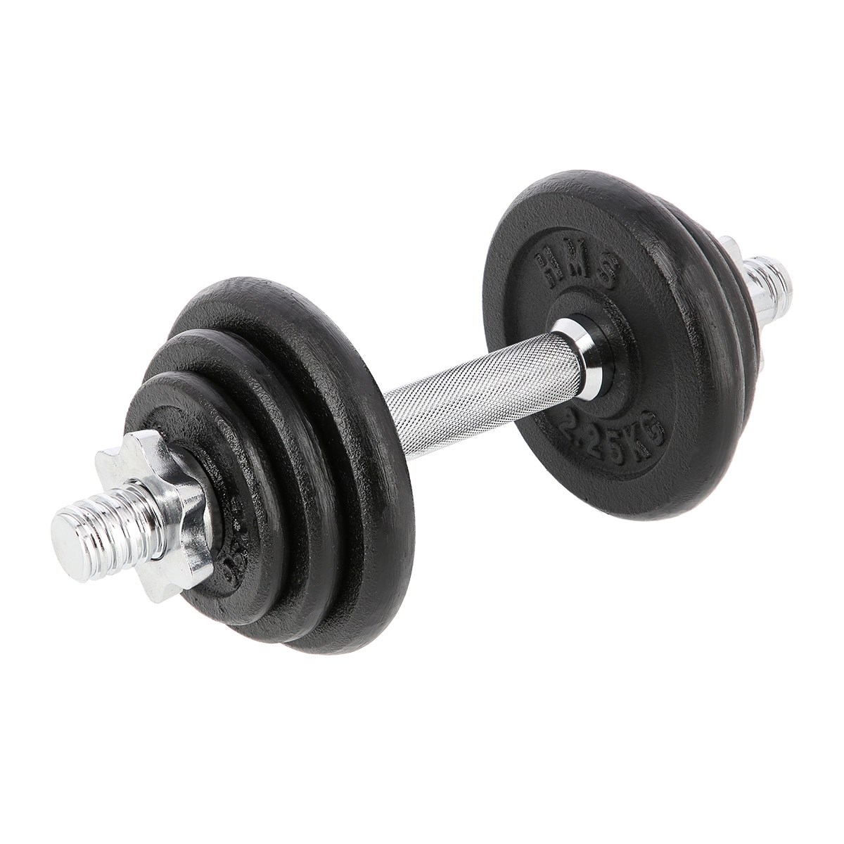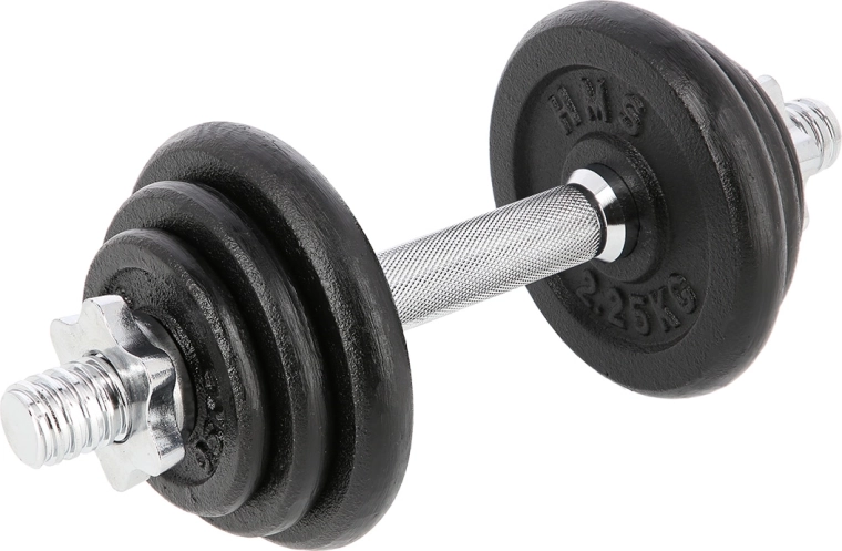 Haltère réglable universel de 10 kg de la marque HMS pour l’entraînement à domicile ou en salle. Grâce aux extrémités filetées et aux écrous étoile, le changement de disques est rapide et surtout sécurisé. Les disques en fonte et la poignée moletée antidérapante offrent stabilité, confiance et un réglage précis de la charge pour divers exercices.