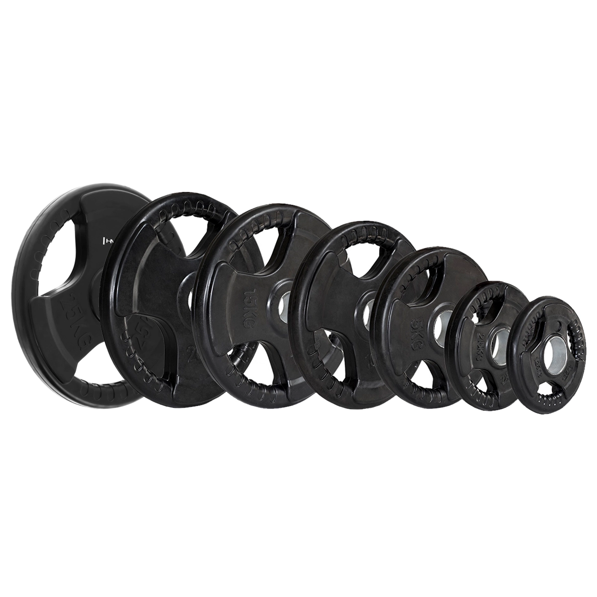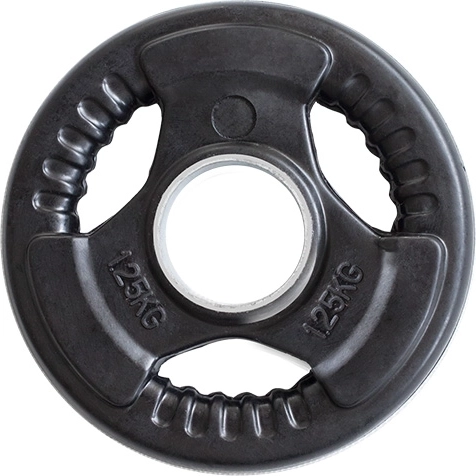Disque olympique HMS de qualité avec prise ergonomique Tri‑Grip d’un poids de 1,25 kg, idéal pour un réglage précis de la charge. Il possède un alésage de 50/51 mm pour barres olympiques, une surface caoutchoutée pour une plus longue durée de vie et trois poignées pratiques pour une manipulation facile et sûre.