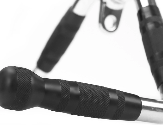 La poignée en acier chromé au corps robuste résiste à une utilisation intensive et garantit la stabilité à chaque répétition.