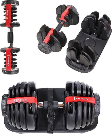Haltère réglable polyvalent pour l’entraînement à domicile avec une plage de 2,5 à 24 kg remplaçant tout un jeu d’haltères. Grâce à la sélection rapide de la charge via des régulateurs latéraux, vous gagnez du temps et de l’espace, tandis que la poignée ergonomique et les matériaux de qualité assurent un entraînement confortable et sécurisé.