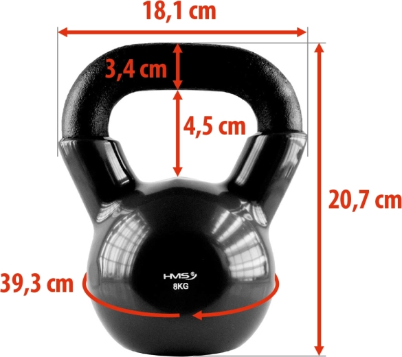 Le kettlebell HMS 8 kg est un choix fiable pour les débutants comme pour les avancés. Le corps en fonte recouvert de vinyle protège le sol, réduit le bruit et s’entretient facilement. La poignée ergonomique et large permet une prise sûre à une ou deux mains, tandis que le fond plat assure la stabilité lors de la pose et de la préparation de la série suivante.