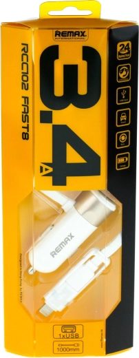 Élégant adaptateur automobile Remax dans une luxueuse teinte dorée avec câble combiné Lightning et micro‑USB, idéal pour recharger rapidement votre téléphone ou tablette en déplacement. Il se branche directement sur la prise allume‑cigare et offre un courant de sortie de 3,4 A pour une charge rapide et stable de plusieurs appareils. Les connecteurs universels assurent une large compatibilité avec la plupart des smartphones et tablettes.