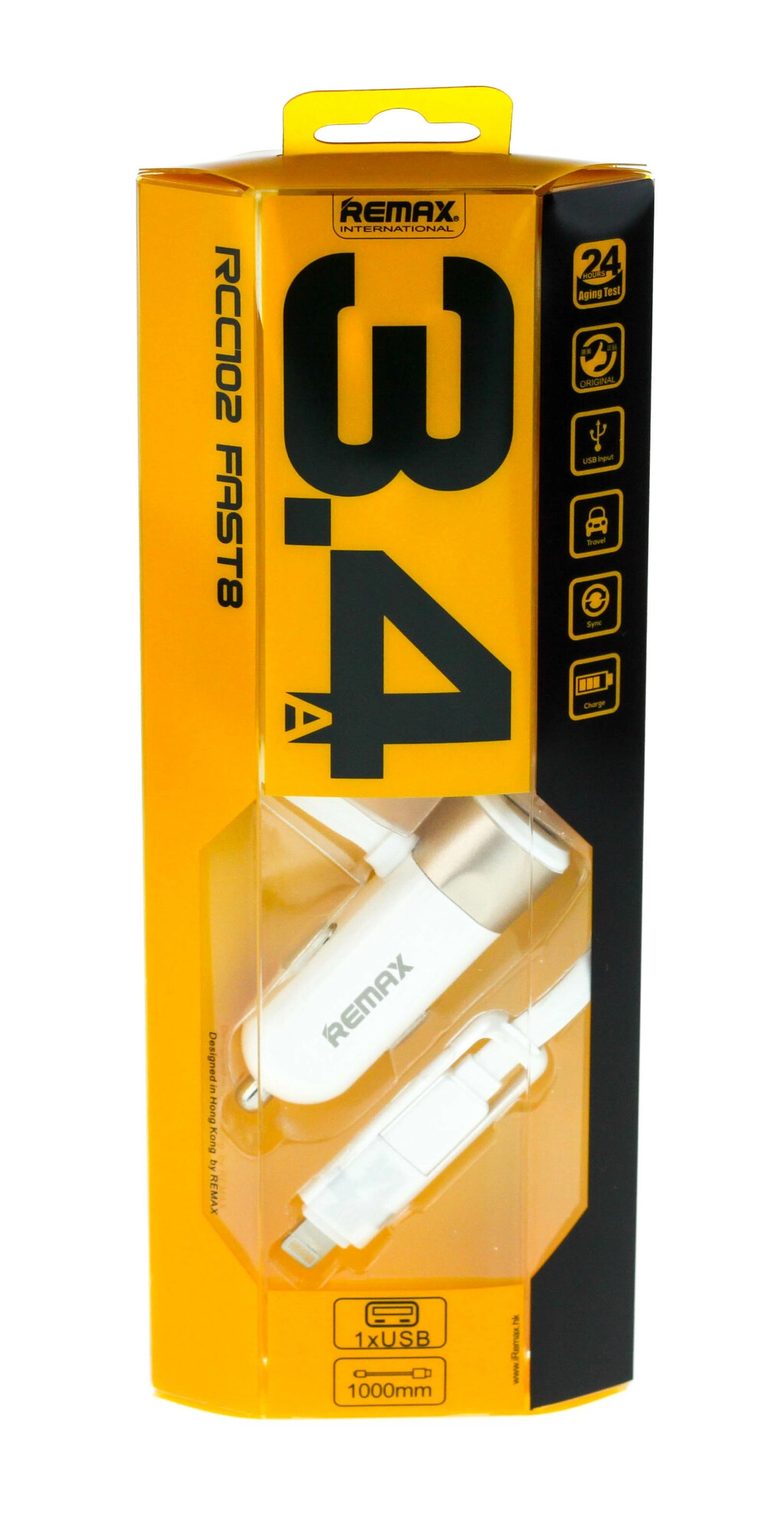 Adaptateur allume-cigare Remax 3,4 A avec câble doré Lightning et micro‑USB
