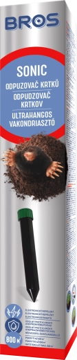 Répulsif sonique écologique pour taupes et campagnols de la marque BROS émet des signaux sonores à une fréquence de 400 Hz qui perturbent efficacement l’environnement des taupes et autres rongeurs. Il couvre une surface de env. 500–600 m², n’utilise pas de produits chimiques et convient à une utilisation toute l’année sur les pelouses, massifs, jardins et terrains de sport.