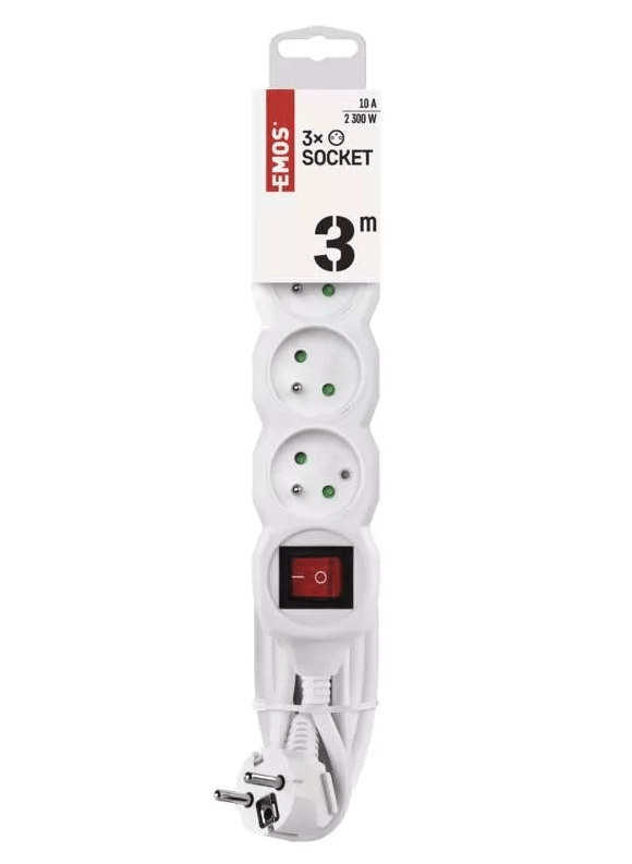 La rallonge pratique Emos avec un câble de 3 m et trois prises dotées d’un interrupteur commun étend de manière fiable la portée de l’alimentation partout où la prise murale ne suffit pas. Elle offre un contrôle pratique via interrupteur, des obturateurs de protection enfants pour plus de sécurité et une charge maximale de 2 300 W dans un coloris blanc élégant.