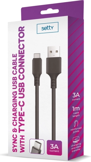 Câble Setty USB–USB‑C 1 m 3 A noir