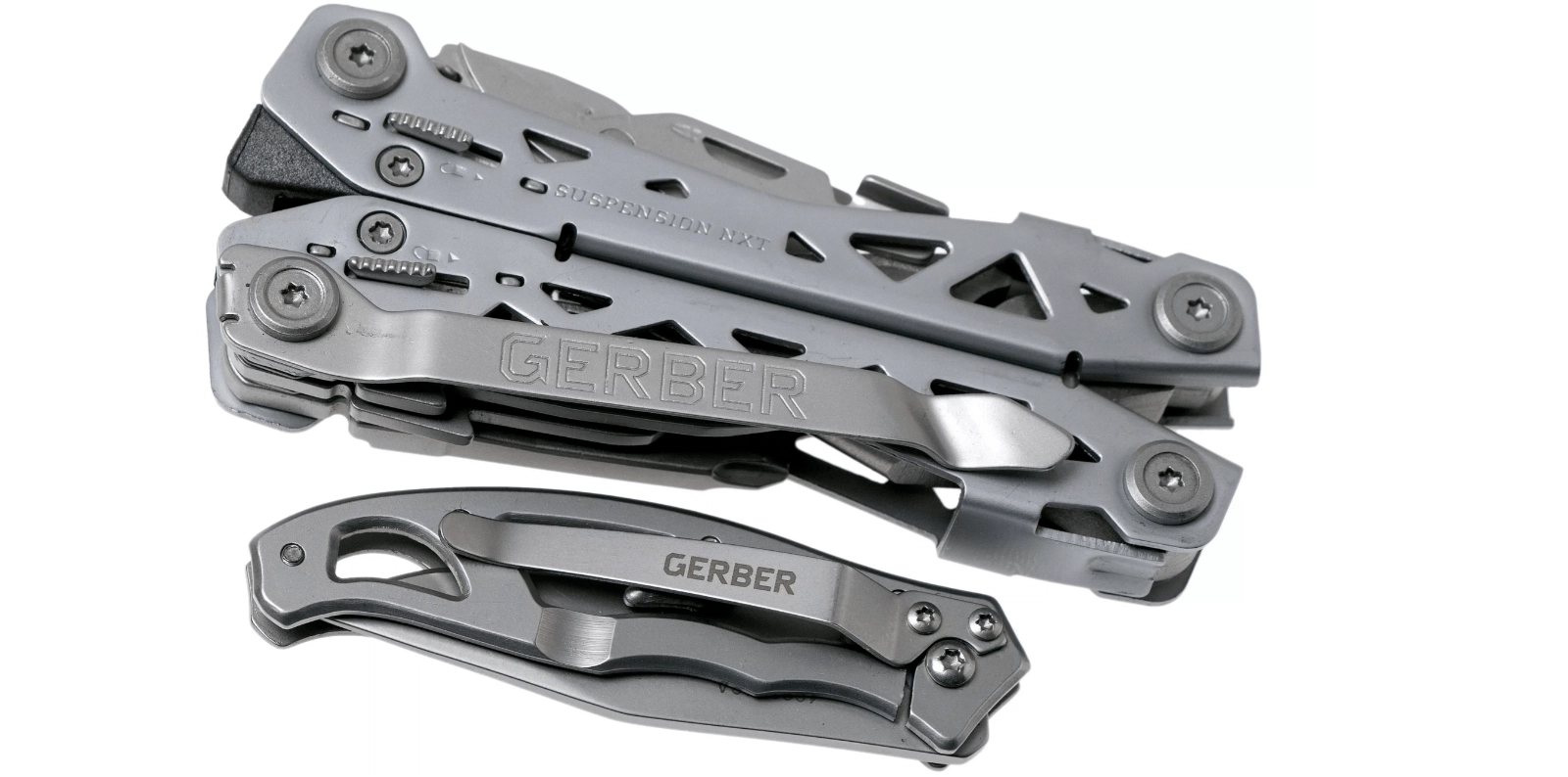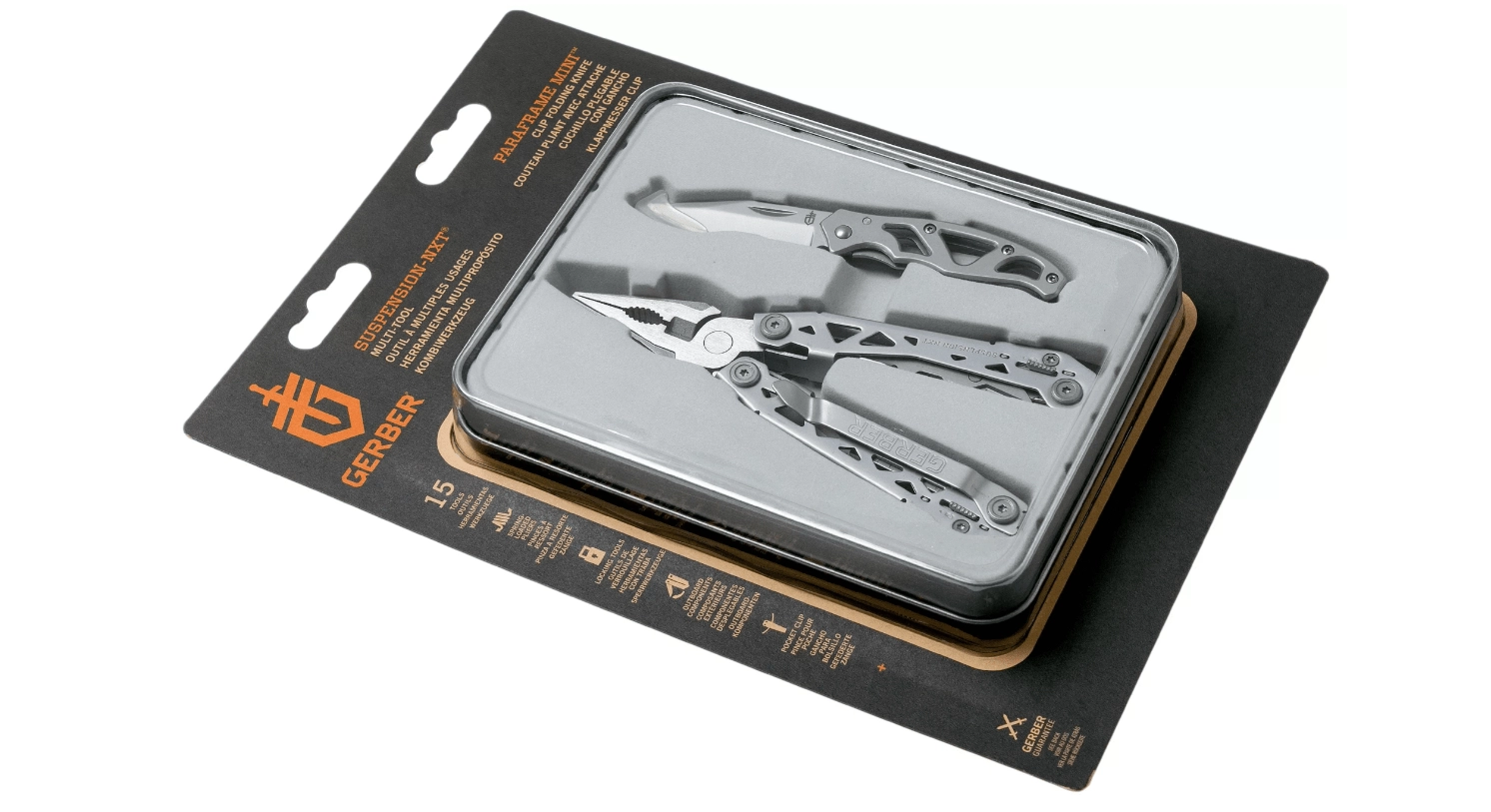Ensemble pratique pour le quotidien : GERBER Suspension NXT pince multifonction avec 15 fonctions et couteau ultra‑léger GERBER Paraframe Mini. L’association de l’acier inoxydable, d’outils fiables et d’un clip de poche garantit durabilité, accès rapide et utilisation sûre à la maison, à l’atelier comme en plein air.