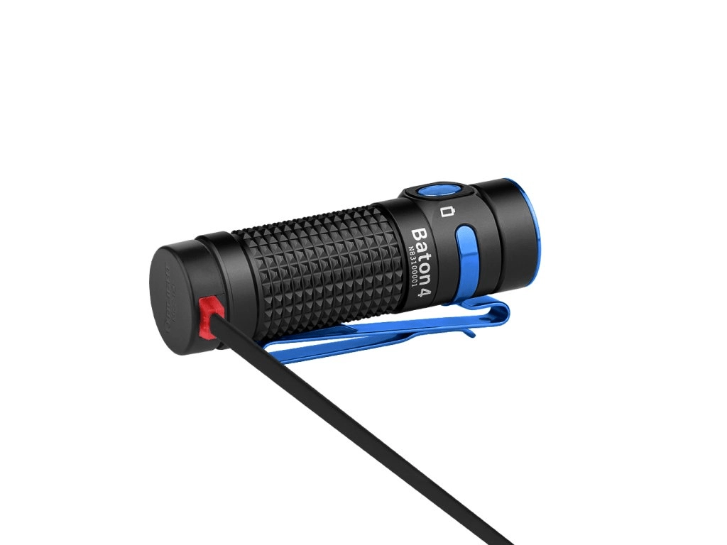 Olight Baton 4 est une lampe EDC performante avec une portée jusqu’à 170 m et cinq modes allant de Moonlight 0,5 lm à Turbo 1300 lm. L’interrupteur latéral assure une sélection rapide des modes, le corps texturé une prise en main sûre et le câble de recharge magnétique MCC 1A une charge pratique sans retirer la batterie.