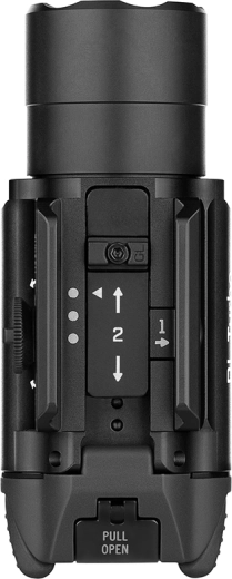 Les interrupteurs arrière ambidextres permettent un allumage rapide, un mode momentané et l’activation immédiate du stroboscope. Grâce au bloc de montage coulissant à trois positions et aux adaptateurs 1913/GL, la lampe s’adapte facilement à différents rails de pistolet. L’électronique intégrée protège la LED – après 4 minutes en mode Turbo, la puissance est intelligemment réduite pour un refroidissement sûr et un éclairage stable.