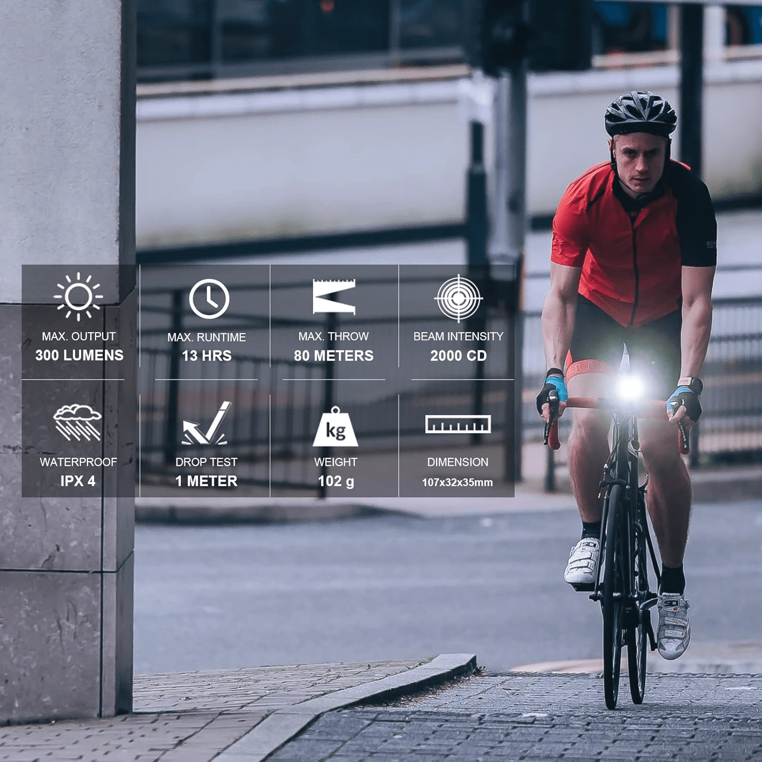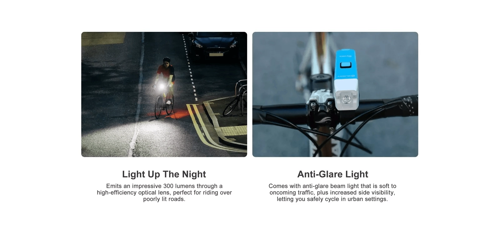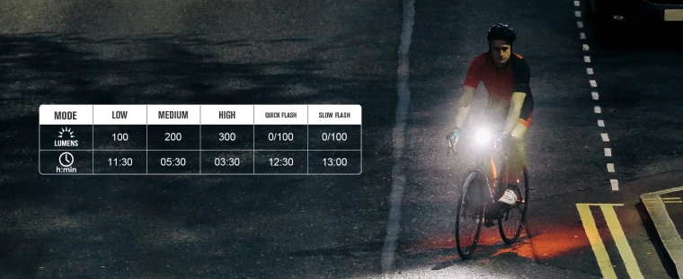 Puissance maximale de 300 lm avec un faisceau optimisé à faible éblouissement pour accroître votre sécurité et celle des autres usagers. Portée de 80 m pour rester serein même sur des sections non éclairées.