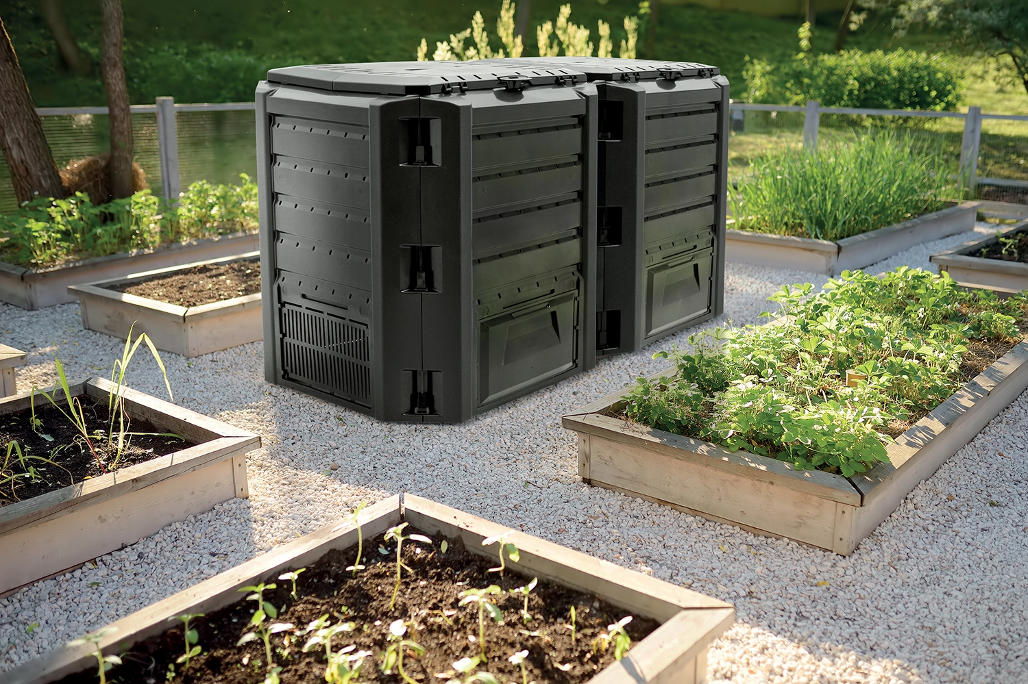 Composteur de jardin pratique de 800 litres pour un traitement rapide et écologique des biodéchets. Grâce à sa construction modulaire et à sa fabrication robuste en noir, il assure un compostage efficace, un remplissage et un prélèvement du compost faciles ainsi qu’une longue durée de vie sans entretien exigeant.