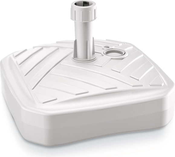 Le socle de parasol UMBRELLA au format carré moderne et de couleur blanche s’intègre parfaitement à tout extérieur. Sa surface à imitation rotin est élégante et facile à entretenir. Grâce à son plastique robuste, il résiste au soleil comme à la pluie, tandis que la possibilité de remplissage jusqu’à 12 litres d’eau ou de sable apporte la stabilité nécessaire même par vent plus soutenu.