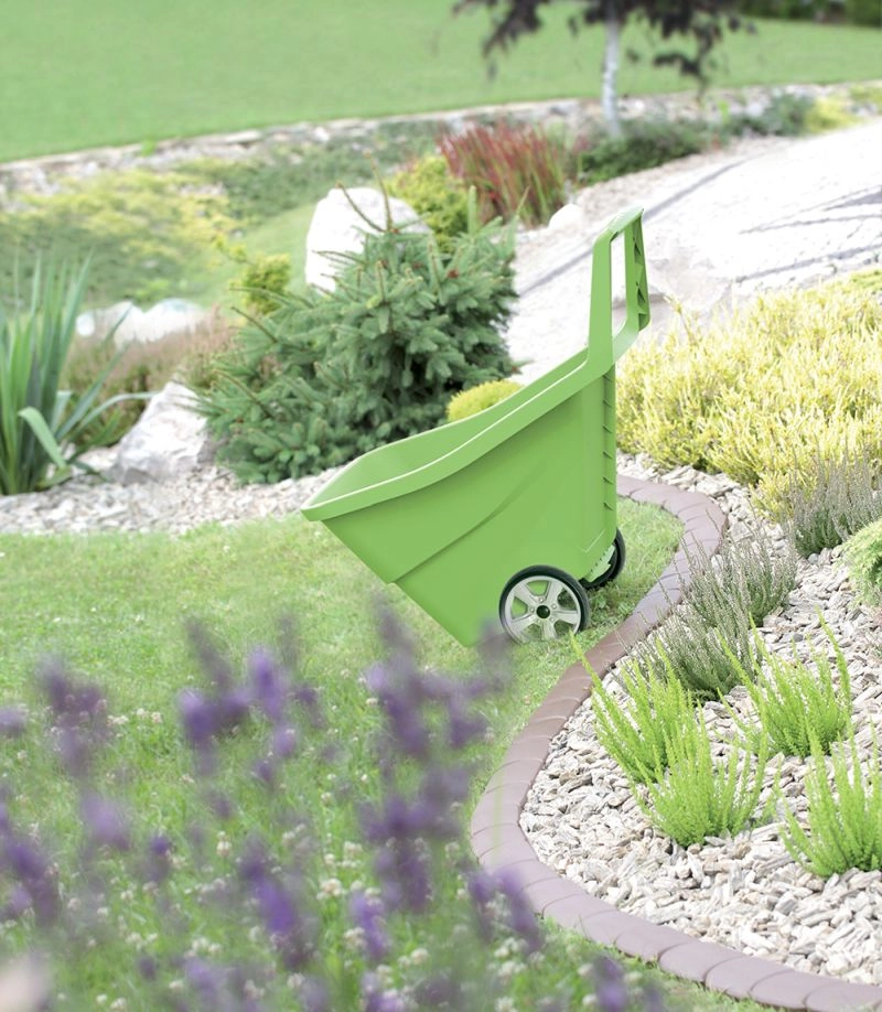 Pratique chariot de jardin d’un volume de 95 l et d’une capacité de charge de 50 kg, facilitant le transport des feuilles, de la terre, du bois et des déchets. Grâce à sa structure légère et stable en polypropylène, à ses deux roues et à sa poignée ergonomique, la manipulation est simple et rapide. Plastique résistant, transport aisé et poignée ergonomique pour gagner du temps et ménager votre dos lors des travaux au jardin.