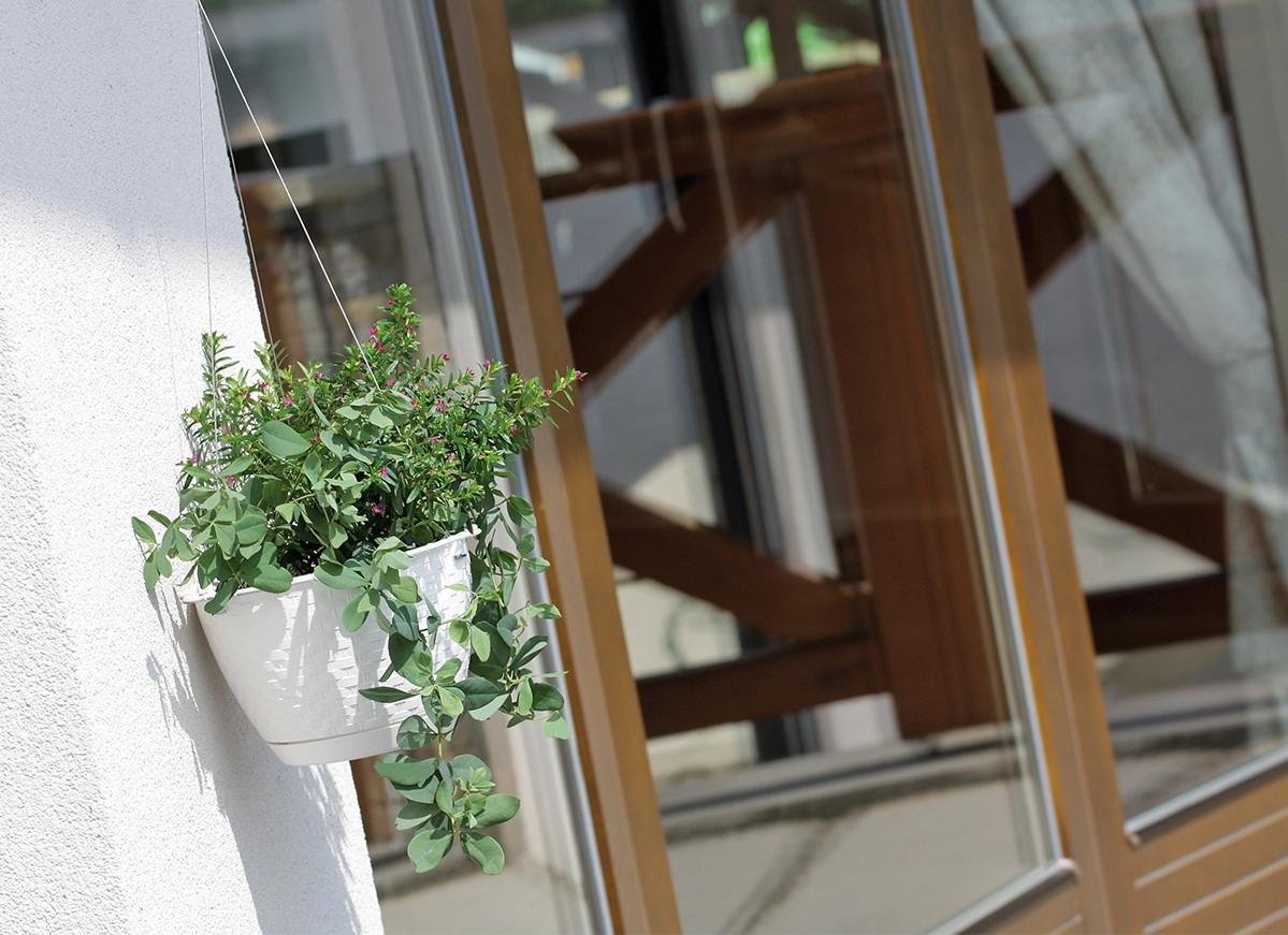 Grâce à sa conception pratique, elle s’accroche facilement, conserve très bien sa forme et offre un volume de 3,4 l pour fleurs, plantes retombantes et herbes. Le réservoir d’eau intégré avec ouverture de remplissage latérale (selon la version) simplifie l’arrosage et aide à maintenir une humidité optimale du substrat.