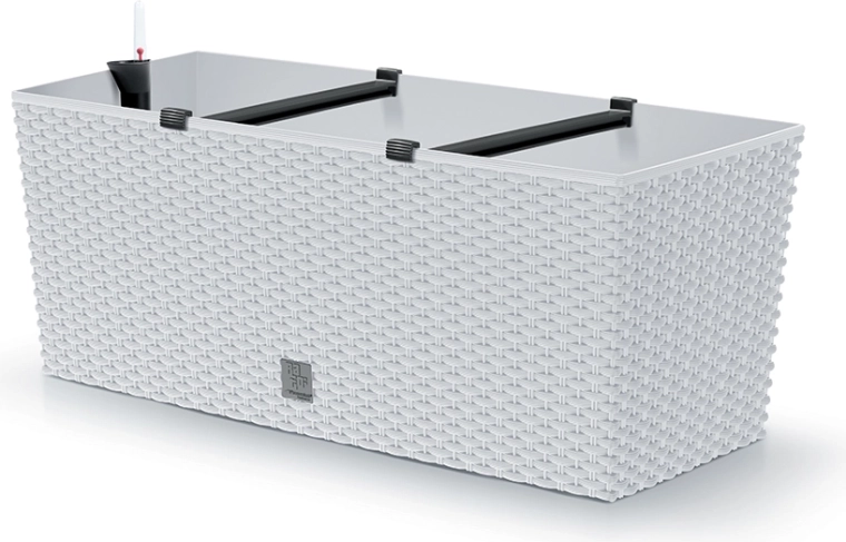 Élégante jardinière auto-irrigante au look rotin, de couleur blanche, qui apporte à l’intérieur comme à l’extérieur un design moderne, un entretien des plantes extrêmement facile et une longue durée de vie. Grâce à son système intégré, elle maintient une humidité optimale du substrat, pour que les plantes prospèrent sans arrosages fréquents.