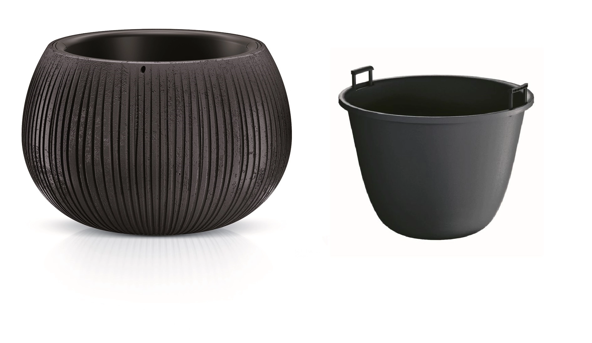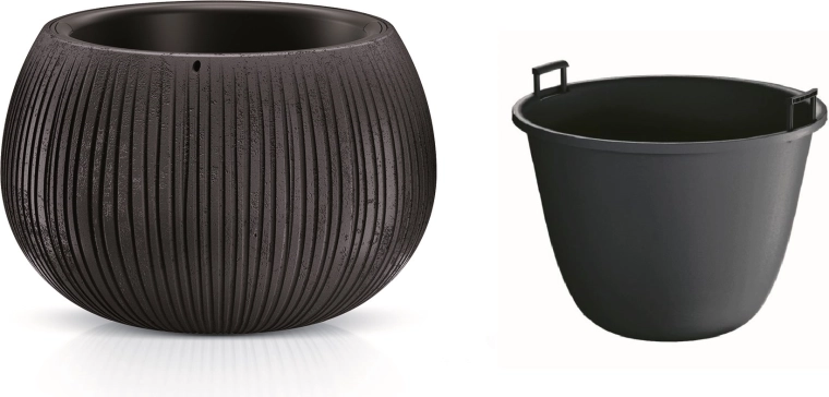 L’insert intérieur avec poignées facilite la plantation, l’arrosage et le nettoyage – vous retirez la plante aisément sans désordre.