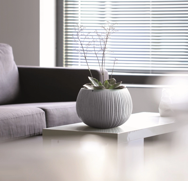 Les rainures et la texture mate imitent le béton et apportent une touche industrielle, tout en gardant le cache-pot léger et facile à déplacer.