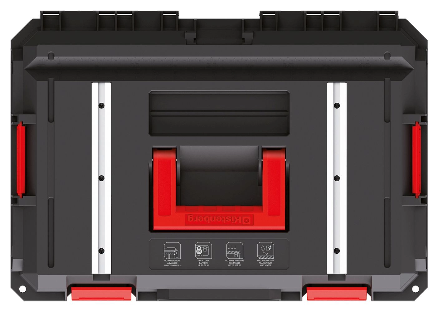 Le coffre à outils Kistenberg X BLOCK TECH est conçu pour les professionnels travaillant quotidiennement dans des conditions exigeantes. Grâce à sa structure nervurée, à ses coins renforcés et à son couvercle étanche, il protège de manière fiable les outils contre la poussière, l’eau et les dommages mécaniques. Le couvercle intègre des rails en aluminium et des rails de serrage « G » permettant de transformer le coffre en une surface de travail stable.