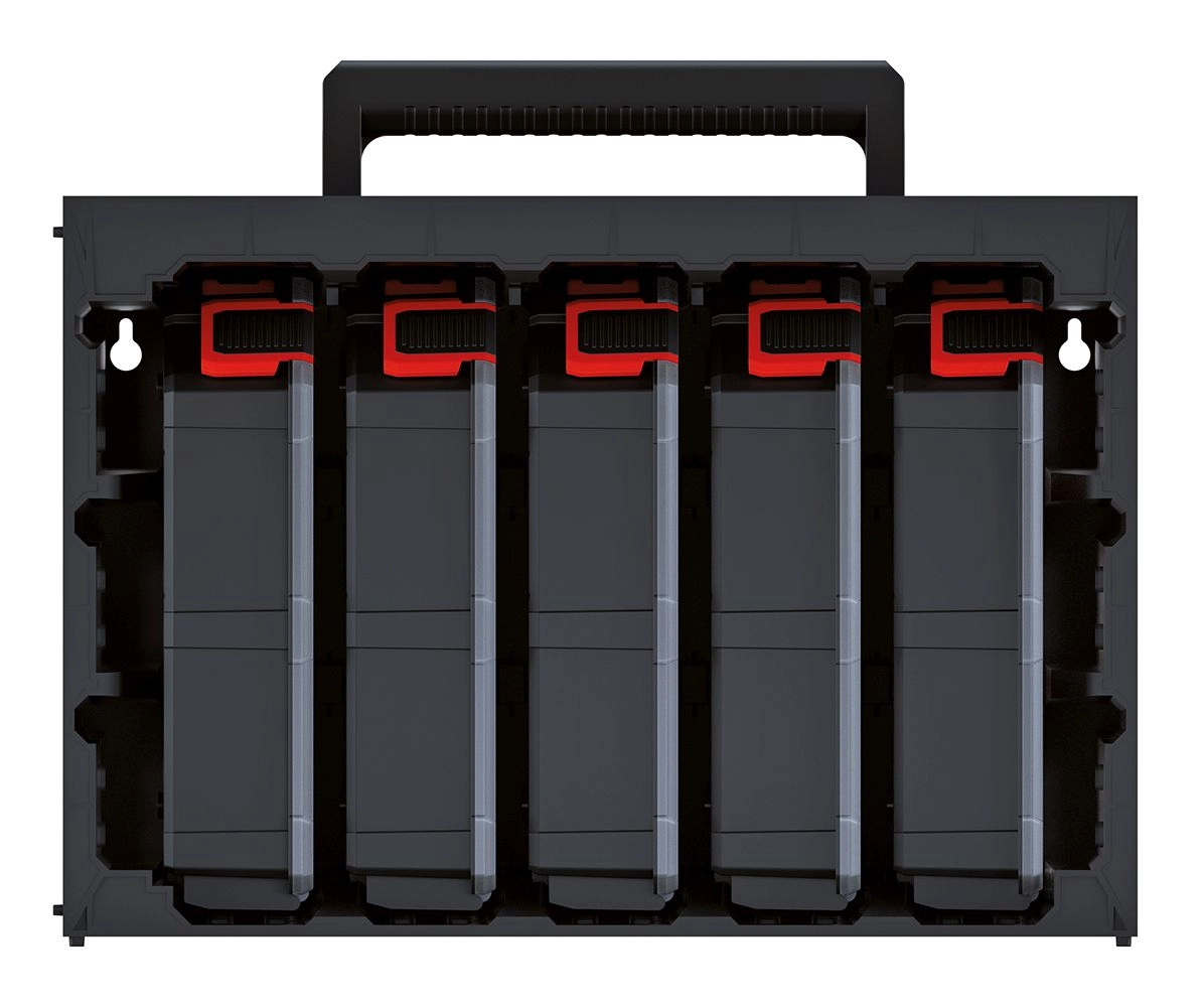 Armoire pratique avec 5 organiseurs amovibles offrant un rangement efficace des petits objets, composants et outils. Grâce aux couvercles transparents, vous avez une vue immédiate sur le contenu, tandis que la poignée ergonomique facilite le transport. Le corps résistant en plastique robuste assure une longue durée de vie, et la possibilité de superposition ou de montage mural permet d’économiser de la place dans l’atelier comme à la maison.