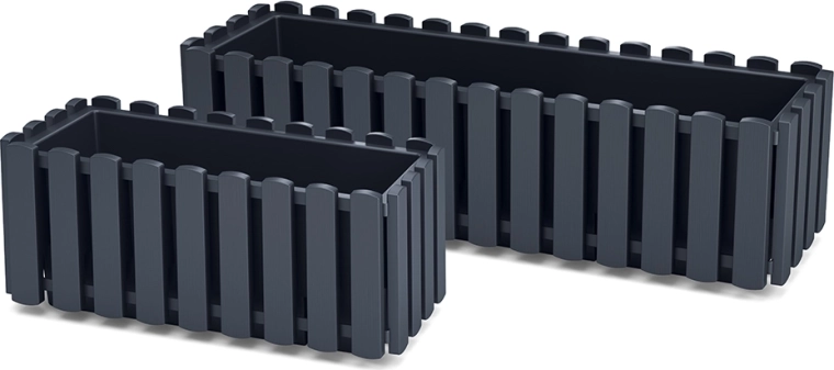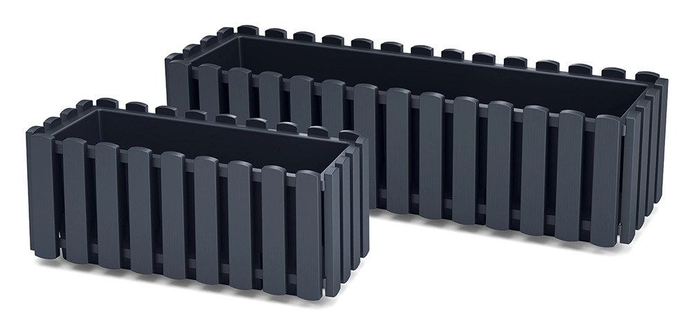 Élégante jardinière de balcon couleur anthracite au design effet lattes de bois, alliant style et praticité pour tout balcon ou terrasse. Grâce au support métallique intégré, l’installation est simple et sûre. La structure en plastique stabilisée UV assure une longue durée de vie avec un entretien minimal, tandis que le système d’arrosage maintient les plantes idéalement hydratées.