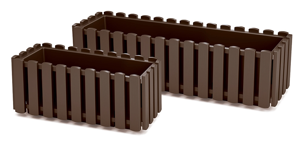 Élégante jardinière marron avec décor de petite clôture de jardin, idéale pour le balcon, la terrasse et l’intérieur. Le plastique léger et résistant supporte les UV et les intempéries, conservant longtemps sa couleur et sa forme. Avec sa longueur de 38 cm, elle est parfaite pour les fleurs, les herbes aromatiques et les petits légumes; le fond permet de créer des trous de drainage avec des bouchons fournis pour une régulation facile de l’arrosage.