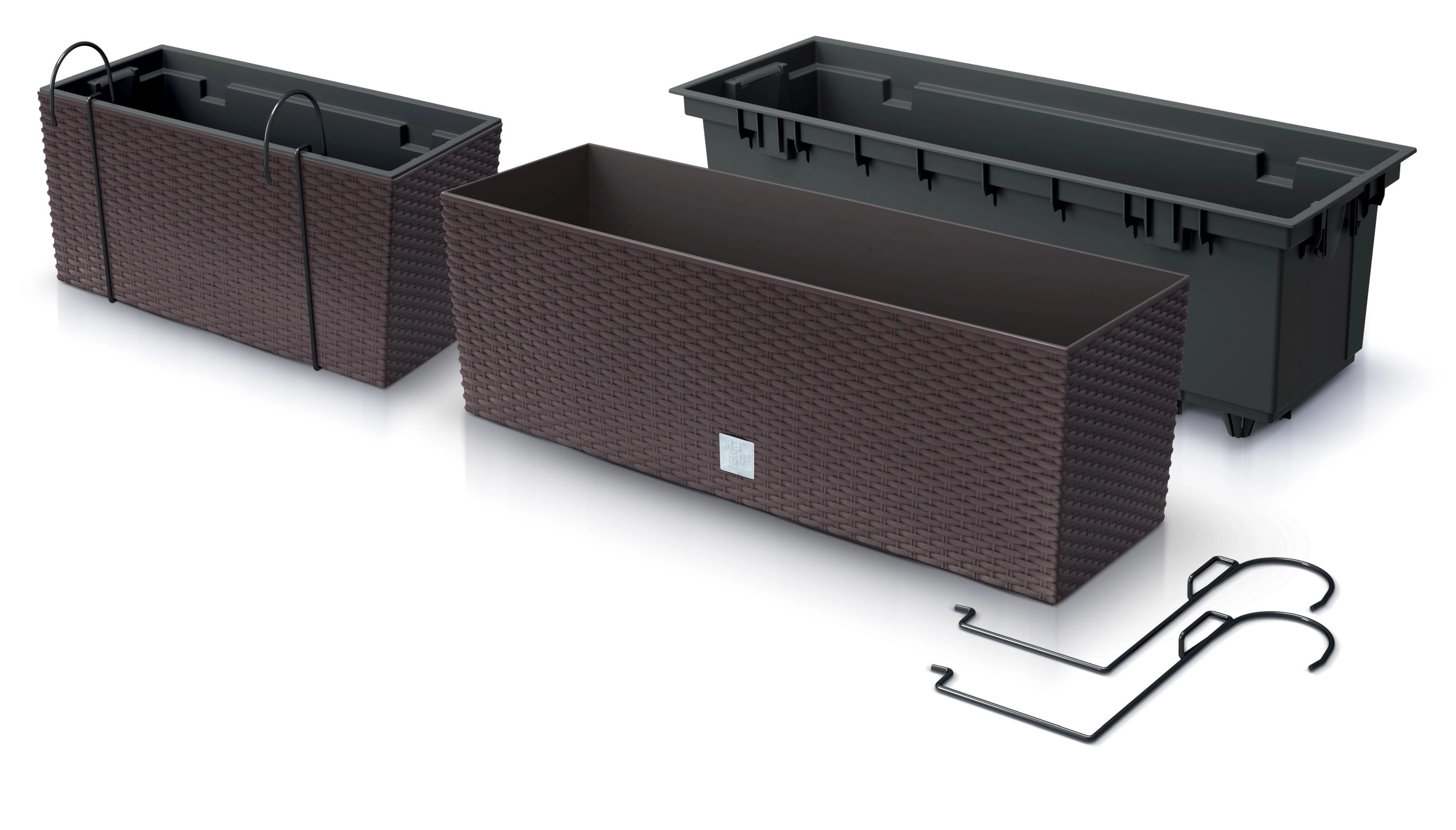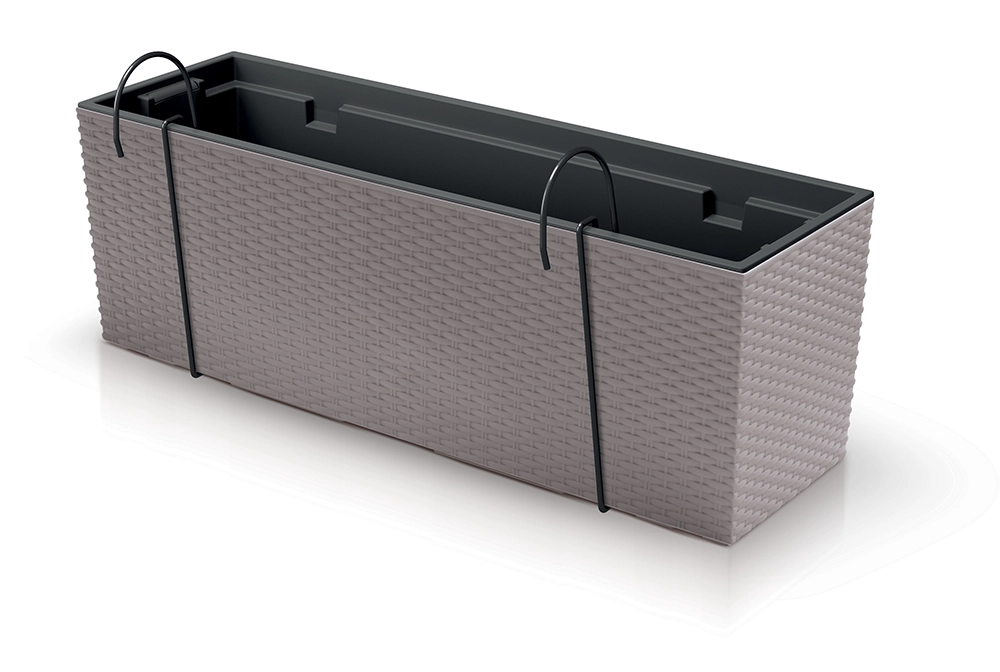 Des crochets métalliques de suspension sont inclus pour fixer rapidement et en toute sécurité la jardinière sur la plupart des garde-corps de balcon.