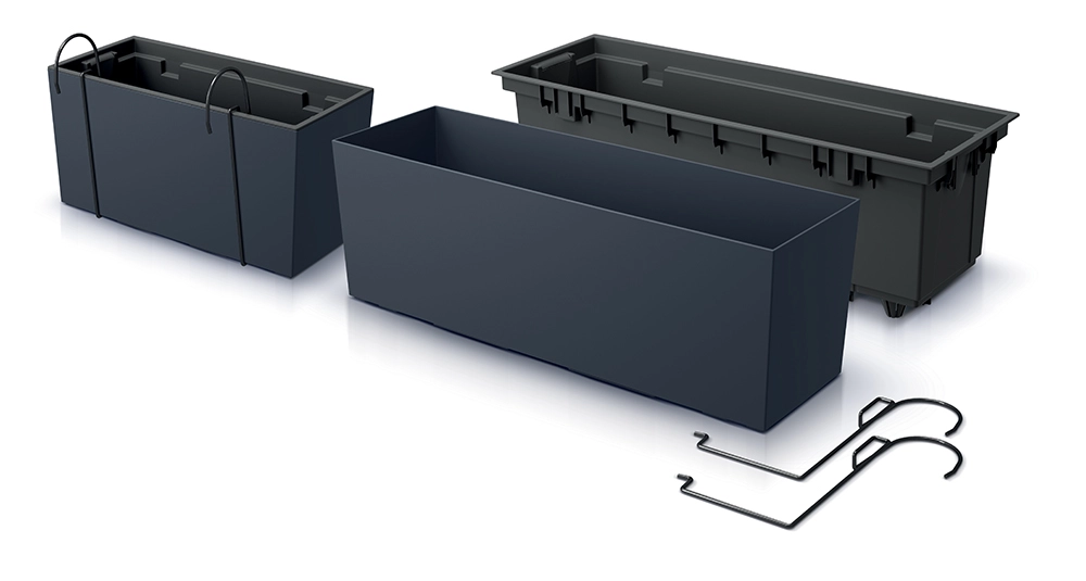 L’emballage comprend un insert amovible pour planter et arroser confortablement, ainsi que des crochets métalliques robustes pour une fixation sûre sur une rambarde ou une autre structure. Grâce à son faible poids, la jardinière se déplace facilement selon vos besoins et l’ensoleillement disponible.