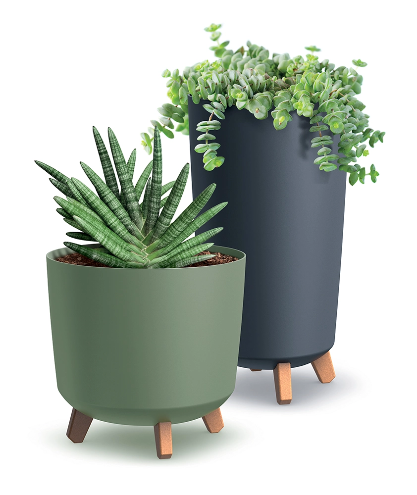 La structure surélevée à petits pieds assure la stabilité, protège la surface sous le cache-pot et favorise un système racinaire plus sain.
