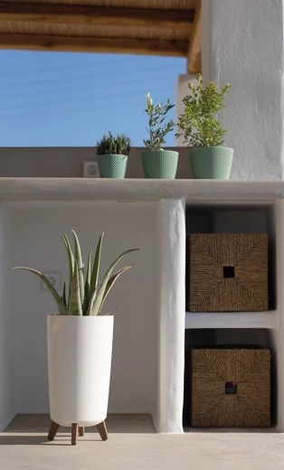 Le corps élancé sur des pieds stables assure une meilleure circulation de l’air autour des plantes et les élève à la hauteur idéale pour une présentation attrayante. Le matériau est résistant aux UV et au gel, vous pouvez donc utiliser le cache-pot toute l’année en toute tranquillité.