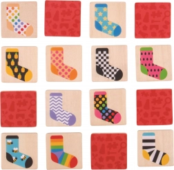 Enrichissez les moments de jeu avec vos enfants grâce au pexeso en bois avec chaussettes. Ce jeu stimule la mémoire et favorise la concentration ainsi que le développement des compétences stratégiques. Tout ce que vous avez à faire est de disposer les 32 pièces en bois face cachée et commencer à retourner deux pièces à la fois. La difficulté augmentant progressivement, le joueur tente d'associer les paires de chaussettes et d'adopter de nouvelles stratégies.