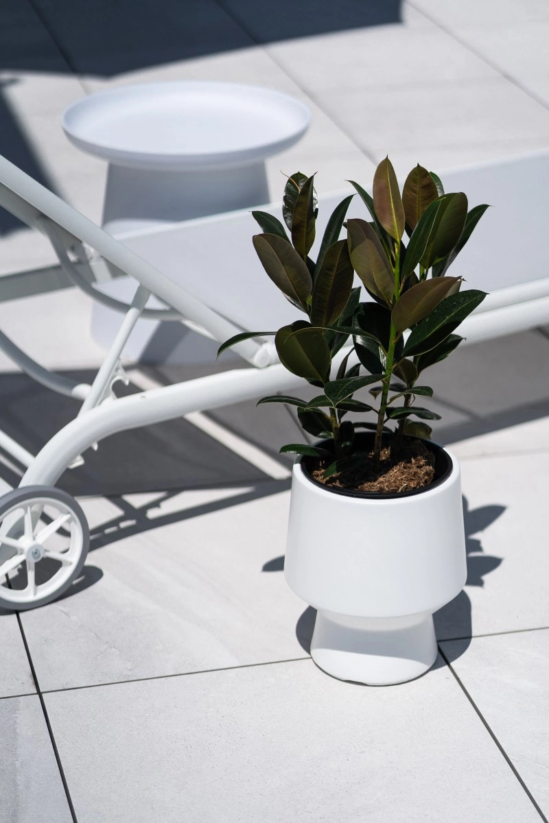 Le pot HEOS allie une allure élégante et minimaliste à une fonctionnalité bien pensée. Sa nuance gris clair et sa surface lisse s’harmonisent facilement avec les intérieurs modernes, les terrasses et les balcons. Grâce à l’insert intérieur, vous utilisez moins de substrat et la manipulation des plantes est beaucoup plus simple.