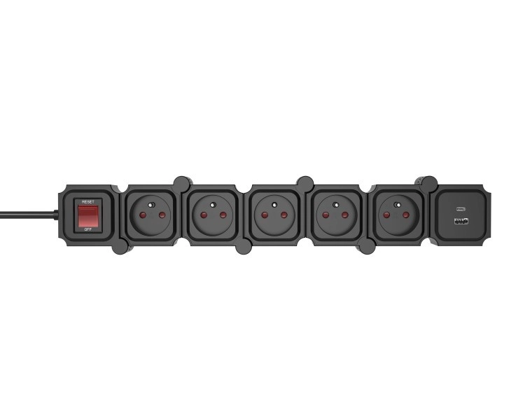 Cette multiprise modulaire intelligente avec cinq prises et USB-A/USB-C intégré pour une charge rapide offre une flexibilité maximale, une utilisation sûre et une alimentation pratique de plusieurs appareils en même temps. Grâce aux segments pivotants, elle s’adapte facilement aux angles et aux espaces étroits, tandis que le disjoncteur avec interrupteur protège contre les surcharges.