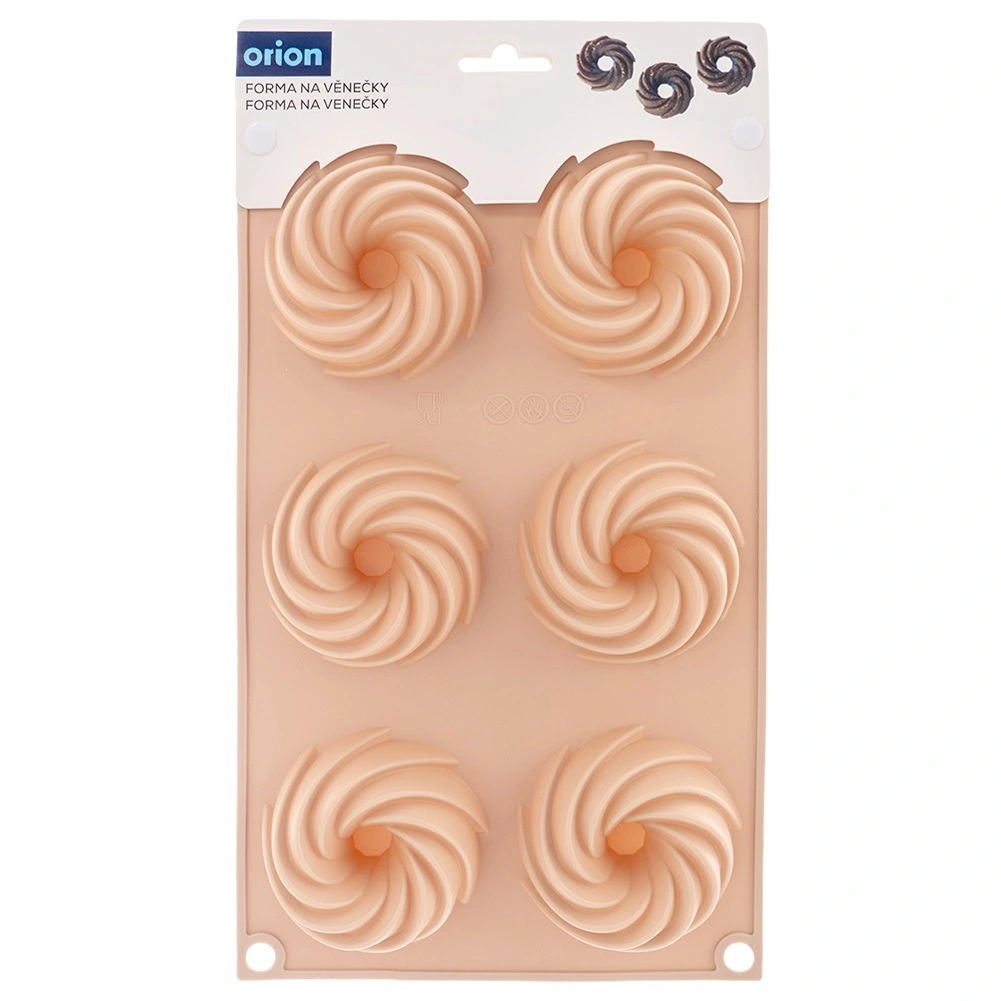 Découvrez la commodité de la cuisson avec ce moule en silicone flexible dans une élégante teinte beige. Les six cavités avec cheminée centrale créent une forme décorative de couronne qui fait toujours sensation sur la table. Le matériau est antiadhésif, résistant à la déformation et n’absorbe pas les odeurs, ce qui permet de démouler la pâte facilement sans ajouter de matière grasse superflue.