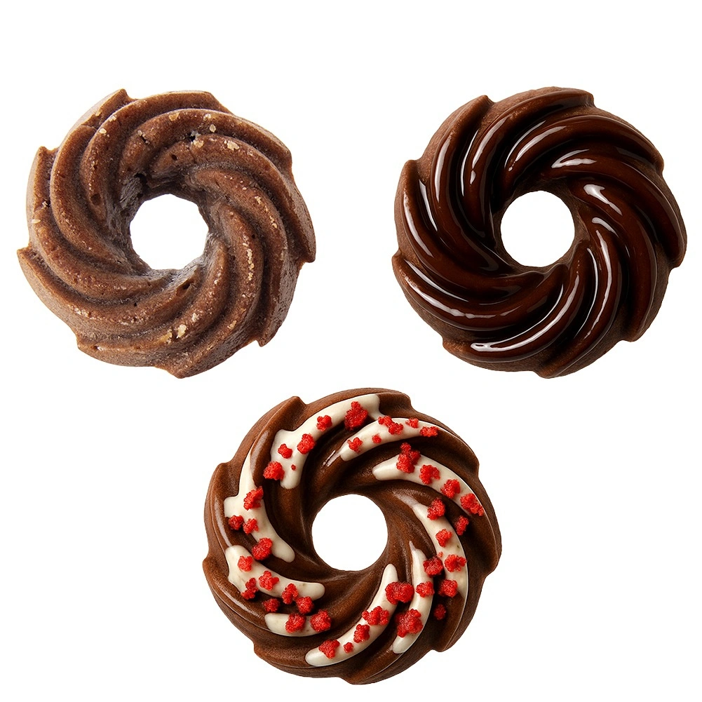 Chaque alvéole possède un renflement central qui assure une meilleure circulation de la chaleur et un attrayant format en couronne. Idéal pour muffins, mini kouglofs et donuts.