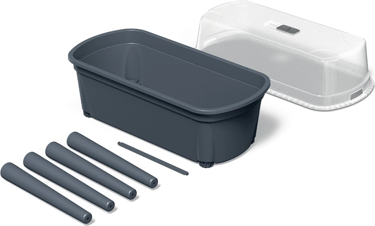 La finition élégante couleur anthracite convient aux intérieurs modernes comme au balcon. Le bac à semis est facile à entretenir et convient à une utilisation saisonnière répétée. Idéal pour les débutants comme pour les jardiniers expérimentés souhaitant garder un contrôle parfait sur leurs semis.