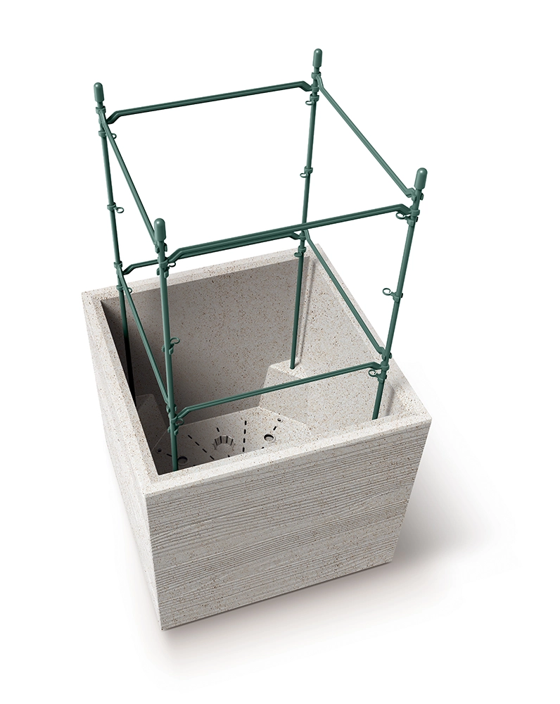 Elle intègre une structure modulaire et empilable, vous permettant de combiner facilement plusieurs pièces pour créer des compositions originales. Des roulettes intégrées facilitent le déplacement des plantes sans effort, et la compatibilité avec les tuteurs de jardin FLOO élargit les possibilités de culture des plantes grimpantes et plus hautes.