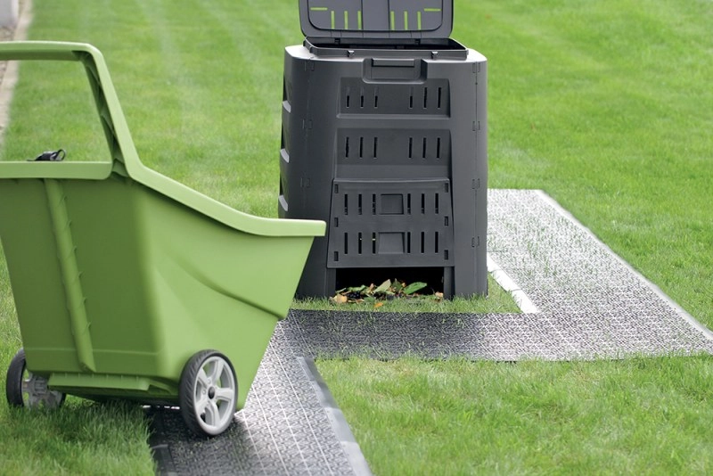 Le plastique robuste résiste aux intempéries et aux charges. Idéal pour les zones extérieures, il protège le support et aide à maintenir la propreté.