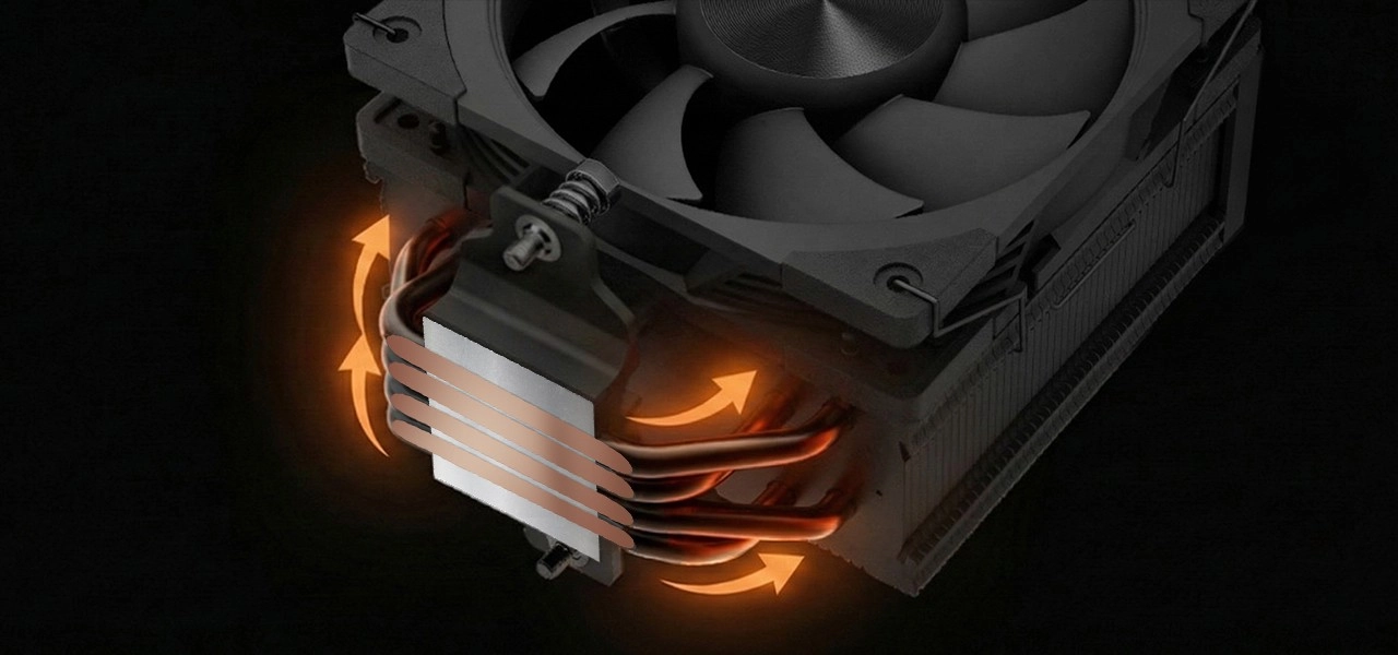 Le transfert de chaleur est assuré par 4 caloducs en cuivre, qui évacuent rapidement la chaleur du processeur vers le radiateur massif. Le ventilateur PWM 120 mm avec une plage d’environ 600–2000 tr/min permet d’ajuster performances et bruit selon les besoins. Une base finement polie assure un contact parfait avec le processeur et une efficacité maximale. La pâte thermique incluse accélère et simplifie l’installation.