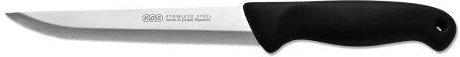 Couteau de cuisine pratique avec lame dentelée de 155 mm pour une découpe facile du pain, des légumes et de la viande. Fabriqué en acier inoxydable de haute qualité, avec une poignée en plastique durable et hygiénique. Léger (61 g), bien équilibré et adapté à un usage domestique comme professionnel. Compatible lave-vaisselle.