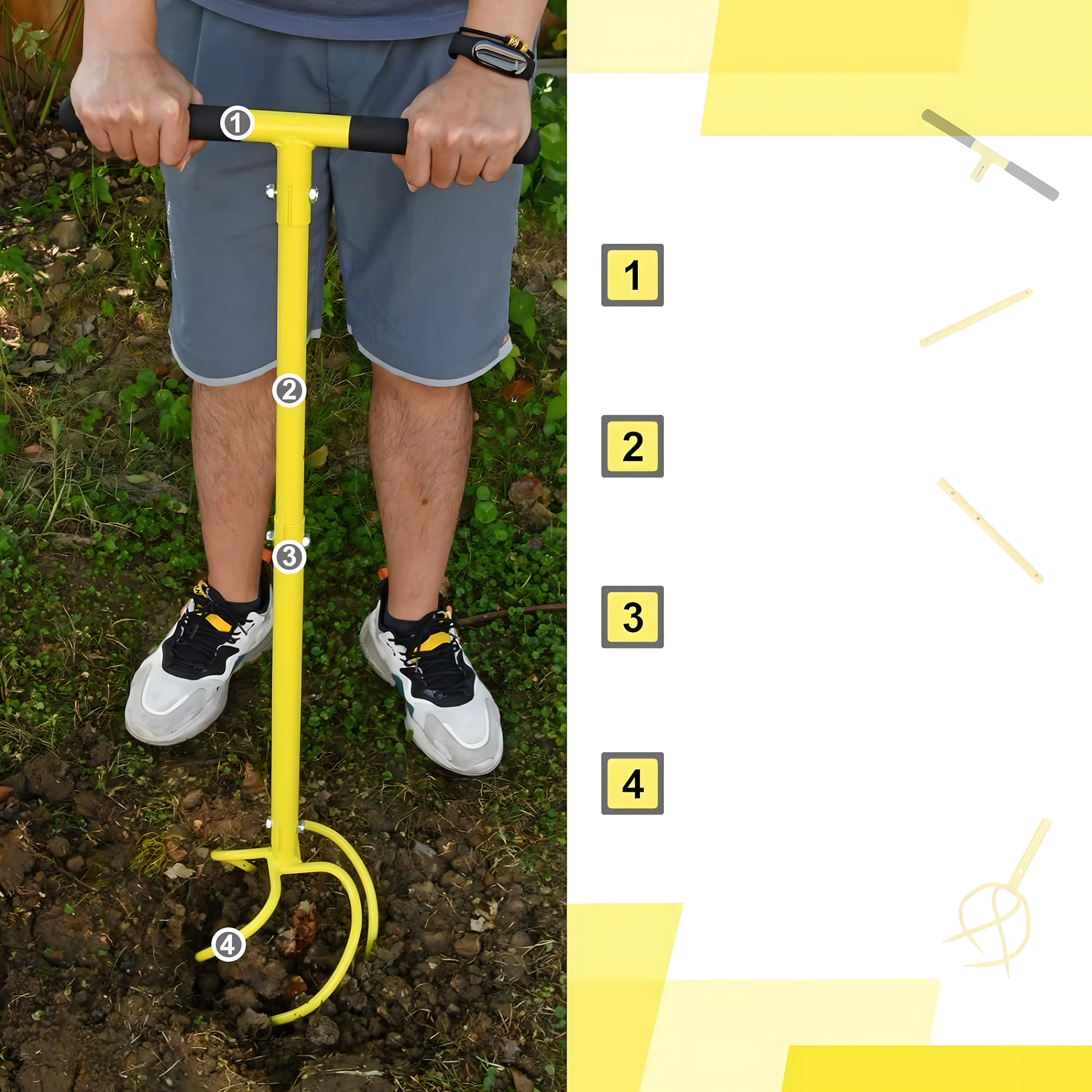 La construction métallique robuste avec dents courbées/hélicoïdales pénètre le sol, brise les mottes et aide à incorporer le compost ou l’engrais. La couleur vive de l’outil améliore sa visibilité au jardin, vous le retrouverez donc toujours facilement.