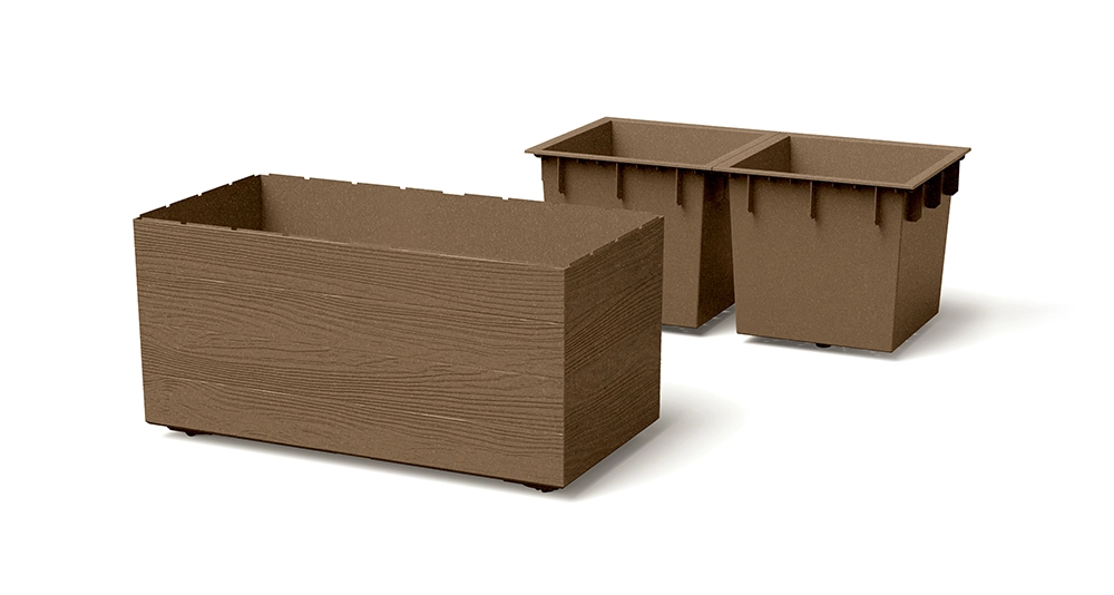 Les inserts intérieurs modulaires facilitent le rempotage et favorisent l’écoulement correct de l’excès d’eau pour un système racinaire plus robuste.